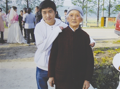 牺牲的维和战士李磊生前与外婆的合影