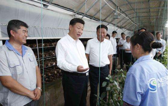 7月19日,在闽宁镇原隆村,习近平走进一座蔬菜香菇种植棚。从事尖椒种植的村民何利霞告诉总书记,自己一个月务工收入2100元,土地流转费1800元,年底分红1万元。总书记说:“希望你们家生活越过越好。”