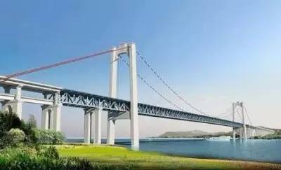 由中铁大桥局承建的连镇铁路镇江长江大桥(效果图)是我国首座公铁两用悬索桥,主跨1092米,荷载及运营速度均属世界第一。