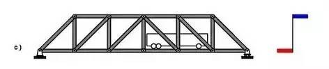 把这个趋势进一步扩大,也就是把原来的梁式结构进一步格构化,去掉应力小的部位,保留最基本的部位,我们就得到了 c 图的这种桁架结构。