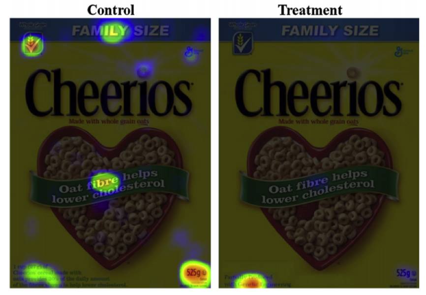 研究人员开始时隐瞒了实验的真正目的,只向两组被试分别出示了一张麦片的包装。被试被要求用鼠标从图片中点选最吸引他们的部分,和最不吸引他们的部分。