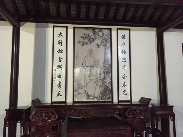 庭院南侧的会客厅,大门迎面一幅长沙后学何泽瀚的隶书对联:“不皖不吴独开一派,是父是子同有千秋。”客厅墙上挂着已故当代著名画家程十发先生精心绘制的王氏父子画像。画像中的王氏父子,一位年逾古稀,一位年过半百,但都精神矍铄,身材瘦削。为了纪念王氏父子的学术成就,1983年高邮市王氏纪念馆开馆的时候,邀请了国内许多专家、学者前来参观,其中许多大家留下了墨宝,这里有武中奇、殷孟伦、朱季海、于安澜、李圣和等名家的书法墨宝。
