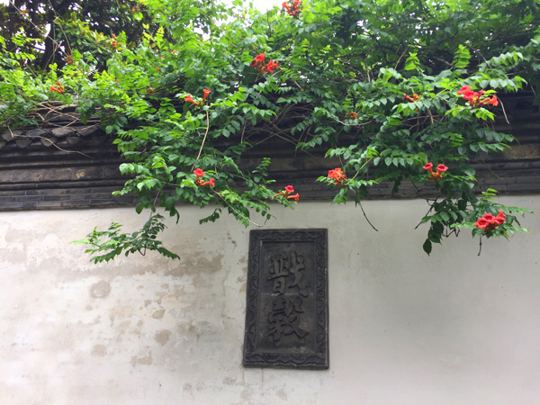 穿过门厅,映入眼帘的照壁上刻有“戬榖”二字。“戬榖”出自《诗经》,戬,尽也,消除也;穀,善也。以前大户人家都会有照壁,写一些福、吉祥如意、开门见喜等吉利的话,王氏家族几代人在朝为官,为人正直,他们用“戬榖”提醒自己时时刻刻要清心寡欲,除尽自己心中的一切贪欲邪念,多做利国利民的好事善事。