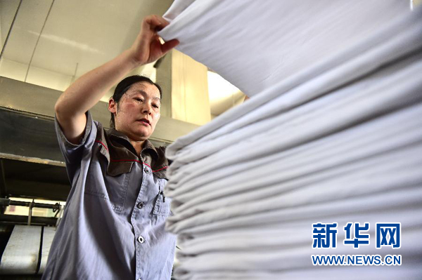 资料图:7月29日,工作人员在合肥客运段洗涤厂车间里整理洗好的卧具。暑运期间,上海铁路局合肥客运段洗涤厂卧具洗涤量较平时增加了20%。在室温高达45摄氏度以上的洗涤车间里,68名员工承担起合肥客运段31对普速列车上的床单、被套、枕套等卧具的清洗任务,平均每日清洗5万余件卧具,为暑运做好保障服务。新华社记者 刘军喜 摄
