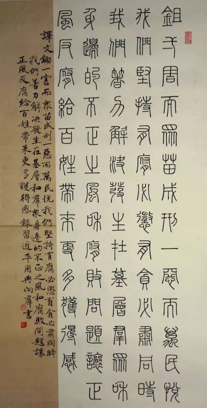 在“两学一做”活动中,知名青年书法家尹向群将习近平总书记系列讲话中的经典语言、典故,用不同的书体展现出来,让大家充分体会中华文化的精髓和中国书法的神韵。
