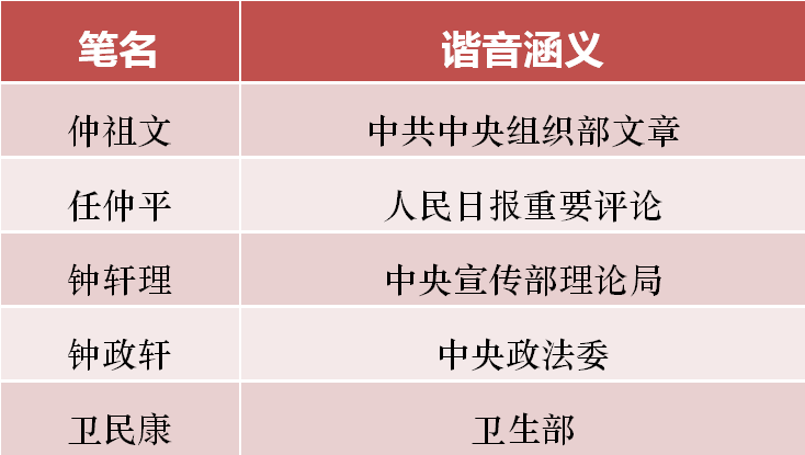 在我国新闻史中,长期存在以谐音笔名发表重要文章的传统。很多中央有关单位的文章并不直接署上该单位名,而是使用笔名,此种署名文章代表的是官方机构权威的思想。