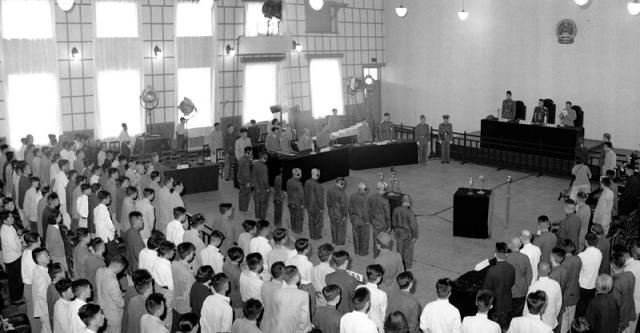 1956年6月9日至19日,中华人民共和国最高人民法院特别军事法庭在沈阳对日本战犯进行了审判。图为审判时的情形。(资料照片)