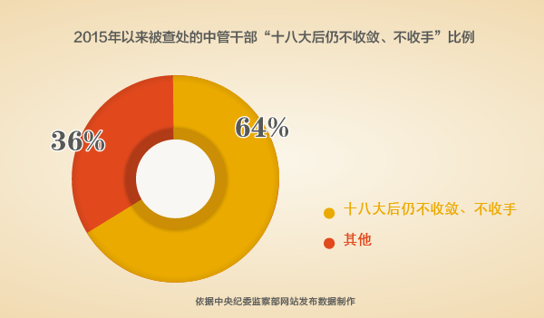 从中央纪委监察部网站2015年以来发布的数据看:64%被查处的中管干部“十八大后仍不收敛、不收手”