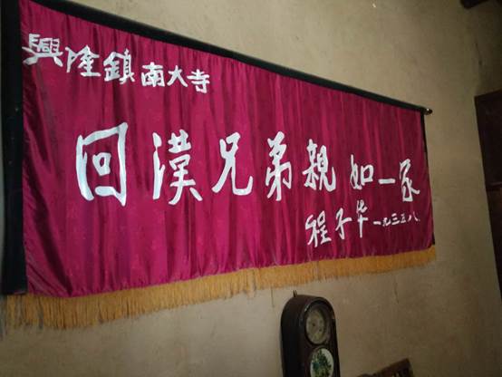 这是红25军离开兴隆镇时,军长程子华为回汉群众的情谊亲笔题的字。现在这幅是仿照当年的匾重新制作的。(新华网记者 卢俊宇 摄)