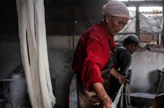 当地农民自制“红军粉”的场景。(新华网记者 卢俊宇 摄)