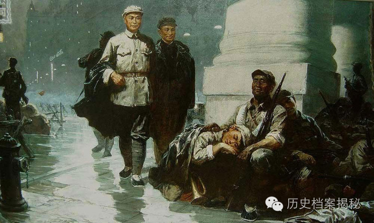 对不入民宅,有的干部想不通,问:“遇到下雨,有伤病员怎么办?”陈毅坚持说:“无条件执行,说不入民宅就是不入,天王老子也不行!”毛泽东看到情况报告,高兴地说了4个“很好”。这就是产生本文主题照片的背景。