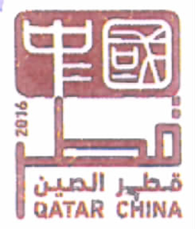 设计理念源于中国传统印章,中文篆体书写的“中国”与阿拉伯语库法体书写的“卡塔尔”上下连接,以卡国旗色深褐色为主色调,两国文化元素互相融合。