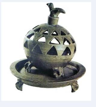 (西晋青釉镂空三兽足熏炉。江苏宜兴出土,现藏中国国家博物馆)