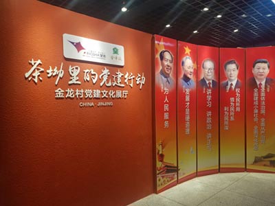 在加强基层党组织建设中,金龙村以“茶山”阵地为载体,以强化“功能型”、“职能型”、“效能型”合一的“三型”党小组建设为重点,通过“三务”积分管理,将信访维稳、精准扶贫等工作的组织阵地前移;以注重“思想性”、“实用性”、“清正性”合一的“三性”党员培养为宗旨,通过集中与线上“O2O”等形式,开辟金龙学堂、家风广场、莲花湾、金井茶文化交流展示中心、石壁湖公园等阵地搭建理论教育、组织生活、党员论坛、文化传播等平台。“通过广义的‘茶山’党建阵地的建设,党员的教育、组织生活不再枯燥无味,流动党员的管理不再流于形式,就拿缴纳党费这个事情来说,每个月在外地的流动党员都能通过微信红包的形式按时缴纳,不仅是一种创新,也在时刻提醒党员同志们的政治自觉。”陈昱烨介绍说。