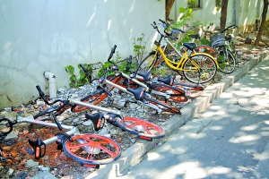 除了这些因被破坏而无法使用之外,一些人甚至将共享单车放置到市民无法触摸的地方。如海珠区康乐涌内发现大量被丢弃的共享单车,据环卫工介绍,一个月的时间就从涌内捞起超过30部共享单车;去年年底,有市民发现,在黄沙地铁站附近有一部共享单车被人为挂到了近两米高的大树上。