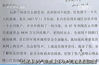 李华波写下自首书:“我自愿服刑完毕后回中国投案自首,自愿撤销在新加坡的所有诉讼,并配合新加坡司法机关将涉案资产悉数归还中国政府。”2015-05-11 20:40:44