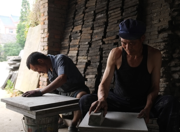 精品京砖,离不开工匠们的手工打磨抛光。