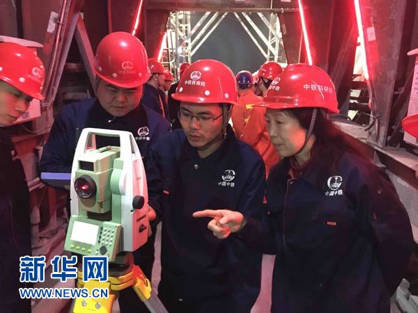 3月1日,严金秀(右一)在成都地铁5号线施工监测现场对施工人员进行指导。新华社发