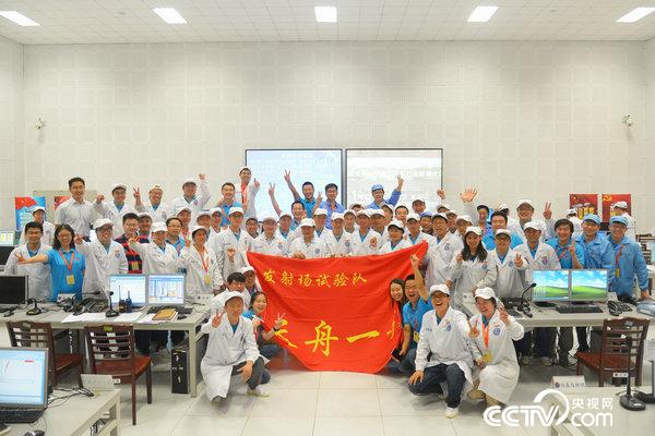 天舟一号发射成功,电测现场工作人员合影欢庆。