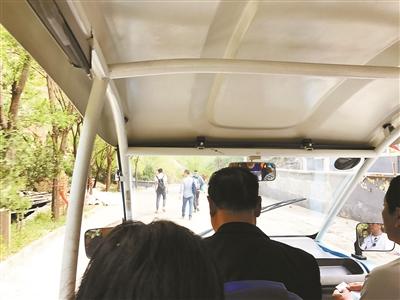 最大的问题在于,这段山路为机动车、电瓶车和行人混行,并没有明显的步行道,行人步行最快也需要1小时左右的时间,只能紧贴山壁行走。下午3点左右北青报记者乘坐电瓶车进入,可以同时看到最少七拨游客在路上行走。