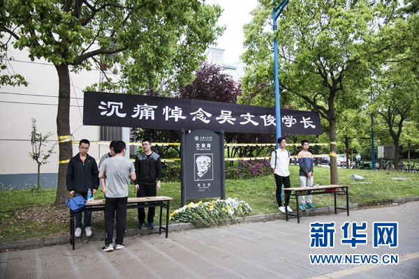 上海交通大学校园里,师生们自发悼念吴文俊(5月7日摄)。他是中国数学界的泰山北斗,他是首届国家最高科技奖的得主,他开创了近代数学史上第一个由中国人原创的研究领域,他立志要让中国数学复兴。 11日,一代数学大师吴文俊先生的追悼仪式在八宝山殡仪馆举行。初夏的北京,千余人在烈日下静静排着长队,只为给他送上最后一程。 “文华逾九章,拓扑公式彪史册;俊杰胜十书,机器证明誉寰球。”挽联黑底白字,为先生的毕生所成写下注解。 新华社发