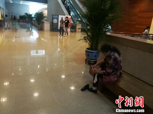 16日,两名参观者坐在国博内大厅的台阶上。上官云 摄