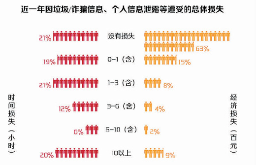 据《中国网民权益保护调查报告(2016)》显示,近一年来,有37%的网民因收到各类诈骗信息而蒙受经济损失,全国网民因权益被侵犯人均遭受133元经济损失。在个人信息安全中,72%的网民认为个人身份信息泄露情况最严重,包括网民的姓名、手机号、住址、身份证号码等信息。
