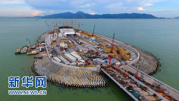 建设中的港珠澳大桥西人工岛(7月4日摄)。新华社记者 梁旭 摄