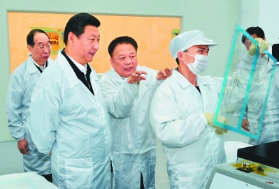 2014年11月,习近平总书记在台商独资企业宸鸿科技(平潭)有限公司考察。(资料图片)