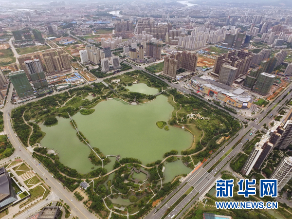 这是位于赣州章江新区的中央生态公园(2016年8月16日摄)。这个公园占地面积逾千亩,兼具了生态、休闲、蓄洪、排涝功能,也是根据福寿沟经验建造的一处工程。新华社记者 周密 摄