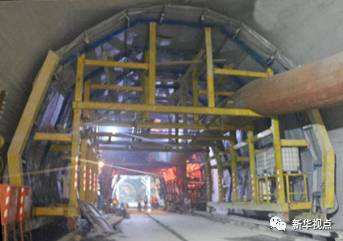 【掌子面比篮球场大】从二号斜井一路下行,有一处宽阔的掌子面。这是一段暗挖隧道,跨度32.7米,高度19.5米,整个面积比一个标准篮球场还大。施工跨度大再加上隧道穿越军都山,地形起伏较大,无法采用盾构掘进机,只能采取爆破工法。