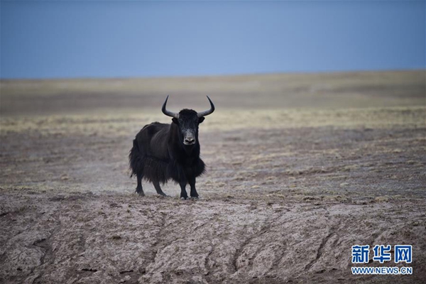一头野牦牛在可可西里保护区内活动(2016年12月1日摄)。 新华社记者 吴刚 摄