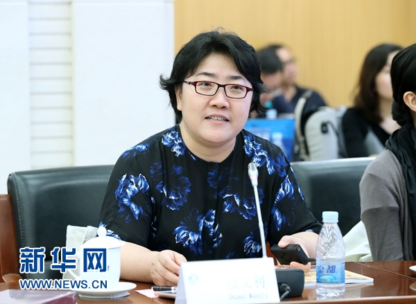 8月31日,新华社举办“再现历史深处记忆——国家相册创办一周年研讨会”,专家学者、新闻媒体负责人等围绕相关问题展开深入研讨。图为北京协和医院宣传处处长段文利在研讨会上发言。新华网 陈竞超 摄