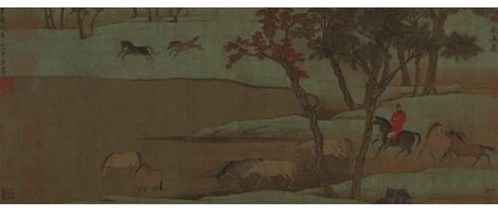 赵孟頫秋郊饮马图卷。图片来源:故宫博物院网站