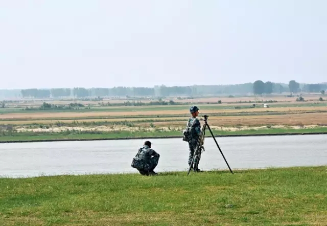 ▲ 山东邹平县黄河防汛队员在黄河岸边巡视(2014年7月7日摄)董乃德 摄
