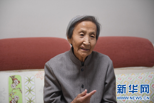 9月28日,原辽源五中物理教师胡慧深向记者讲述南仁东的往事。 新华社记者 张楠 摄