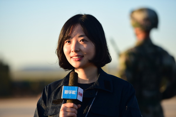 图为2017年7月陈曦在内蒙古朱日和训练基地参与建军90周年阅兵报道