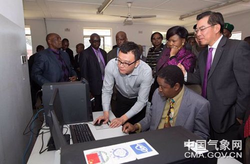 中央气象台技术人员在津巴布韦帮助当地人员使用MICAPS系统。