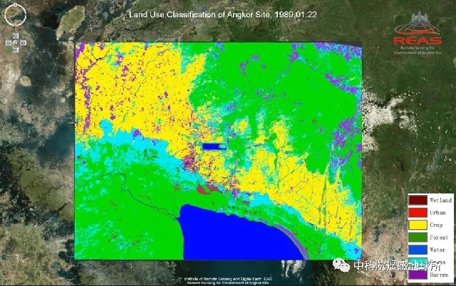吴哥遗产地土地利用遥感分类图。