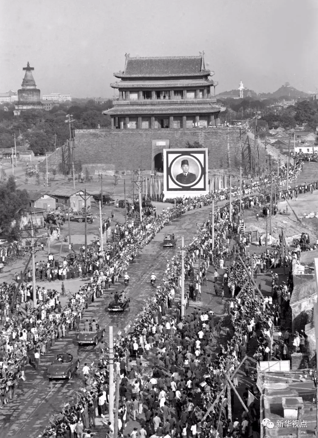 1956年9月30日,印度尼西亚共和国总统苏加诺应邀来中国访问,他乘坐汽车进入阜成门时,受到北京市人民的热烈欢迎。新华社记者杜修贤摄