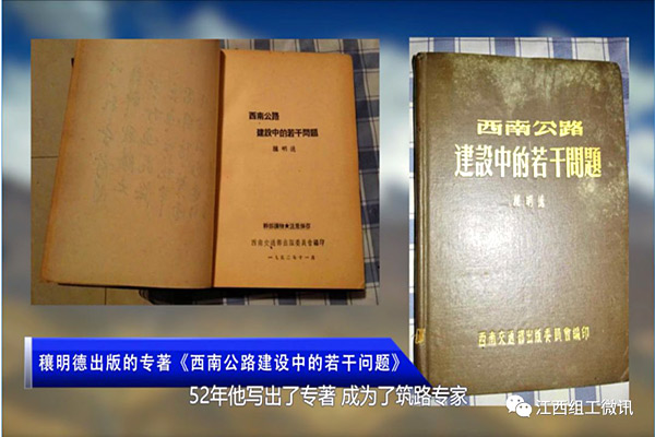 在修筑康藏公路期间,父亲由于只上过两个半年的私塾,没有文化,所以修路对他来说是个门外汉。但是在修路期间,他认真地钻研工程技术。当时有人说他,你一个政委,管工程上的事干什么?他默默地下决心仔细钻研技术,52年他写出了专著,成为了筑路专家。