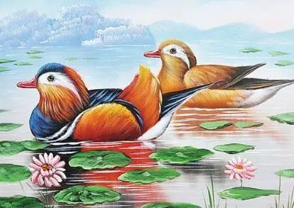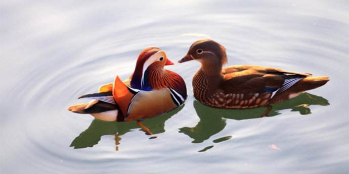 后来,李时珍的《本草纲目》中把鸳鸯形容为“终日并游,有宛在水中央之意也。”