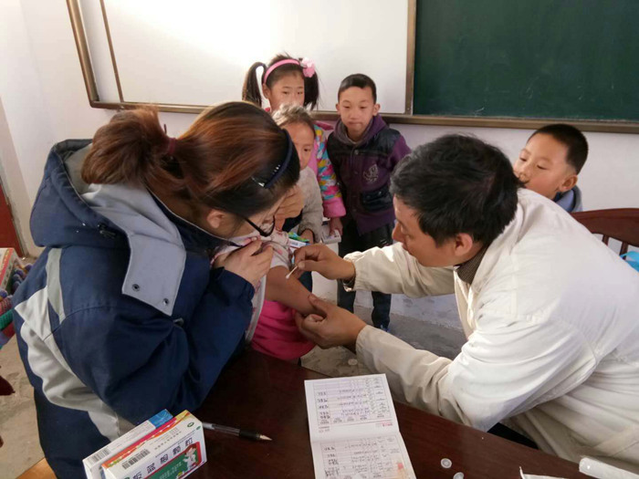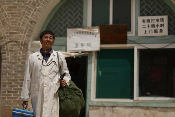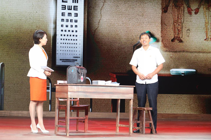 图为贺星龙开心地通过摄像头介绍他的诊所。