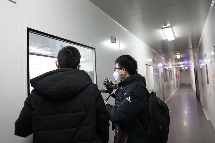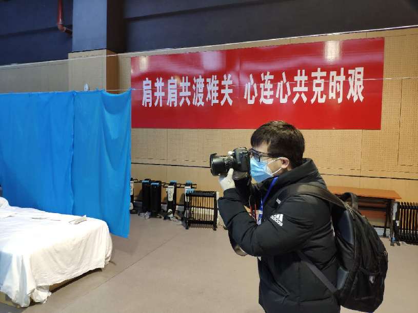 2月14日,首个中医方舱医院开舱当日,章正前往医院采访。