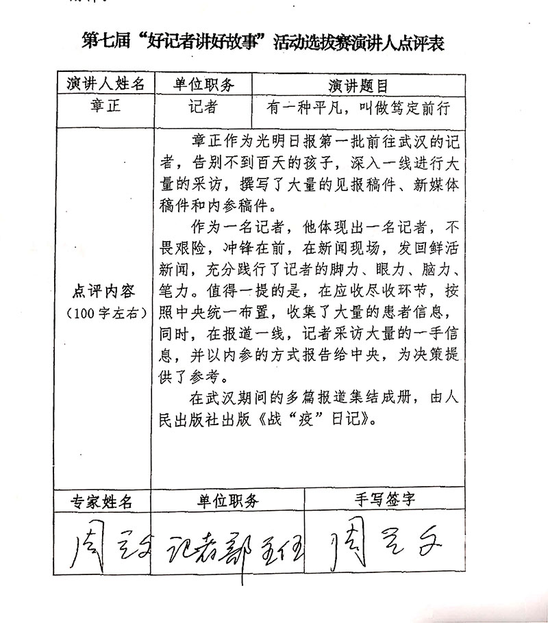 1月29日,作为光明日报第一批记者进入武汉报道,撰写大量公开报道和内参报道,参加应收尽收的排查工作,稿件《战“疫”的力量》获报社月度好新闻特别奖。在武汉期间的报道集结成册,由人民出版社出版《战“疫”日记》,人民文学杂志刊发报告文学《那些匆匆而过的英雄本来如此平常》,后被新华文摘杂志收录转载。