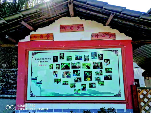 清晨的第一缕阳光穿越山谷,照在井冈山茅坪镇神山村一面由30张脱贫户照片拼成的“笑脸墙”上。