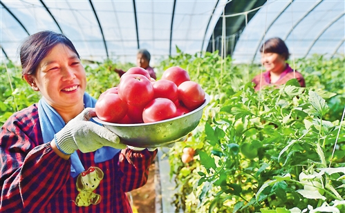 平山县苏家庄乡上东峪村高标准日光温室里的西红柿长势喜人。 张晓峰摄