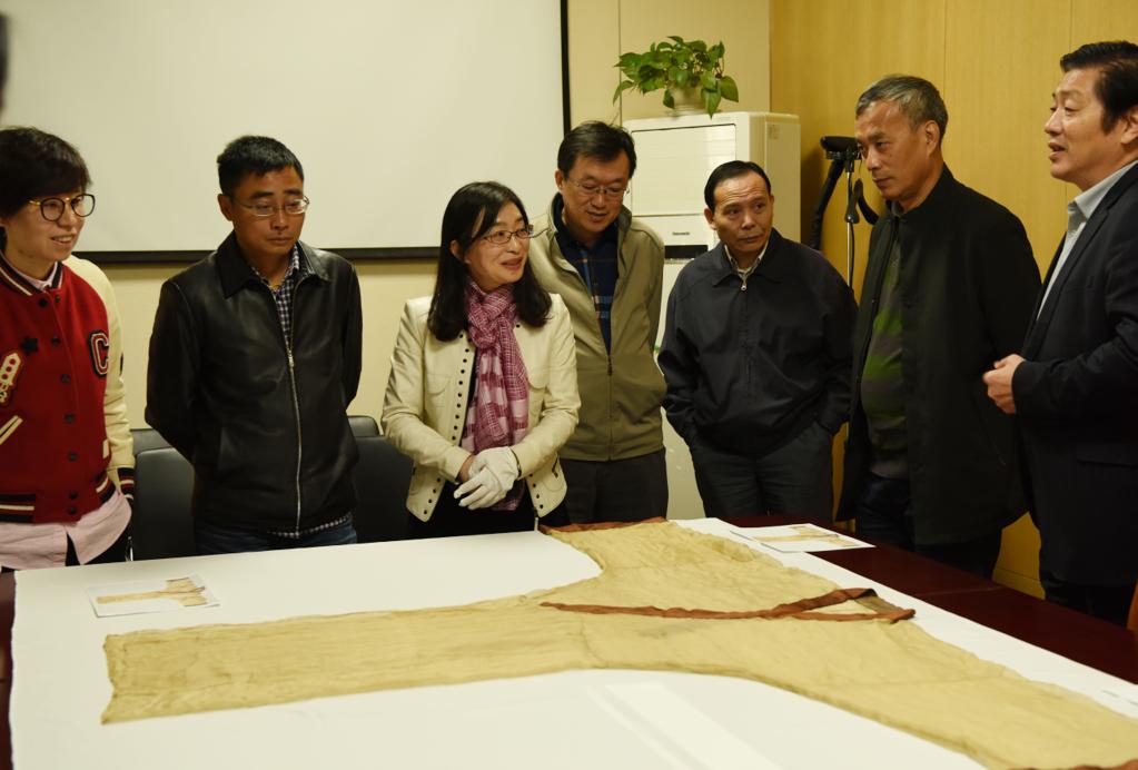这是南京云锦研究所设计中心主任杨冀元(左一)和相关专家在仿制素纱单衣前召开论证会。南京云锦研究所供图