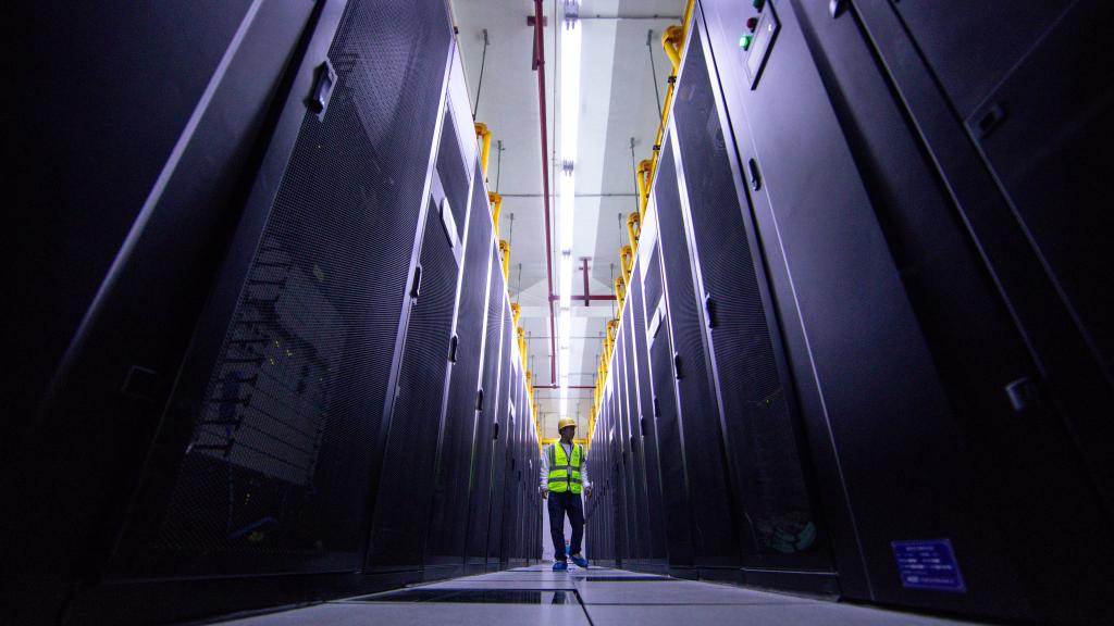 5月24日,工作人员在中国移动贵阳数据中心的机房内进行巡检。新华社记者欧东衢 摄