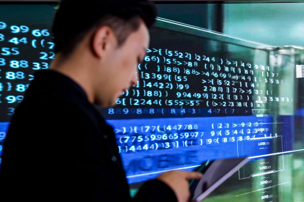 5月24日,工作人员在中国移动贵州数据中心内通过平板电脑操作大屏幕。新华社记者欧东衢 摄